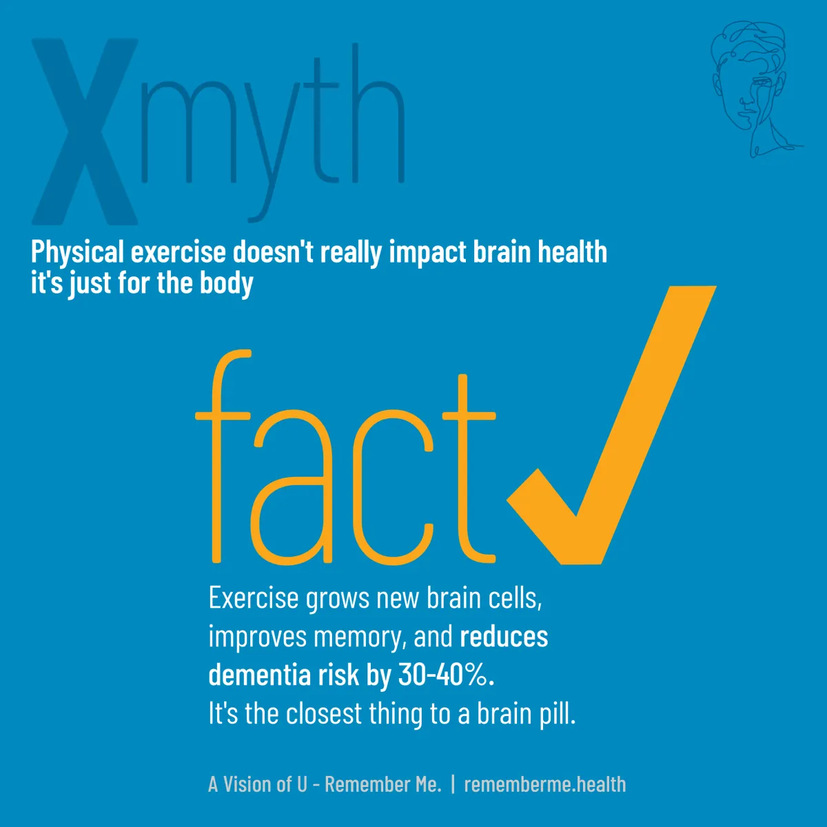 Fact:"Exercise grows new brain cells, improves memory, and reduces dementia risk by 30-40%. It's the closest thing to a brain pill.”