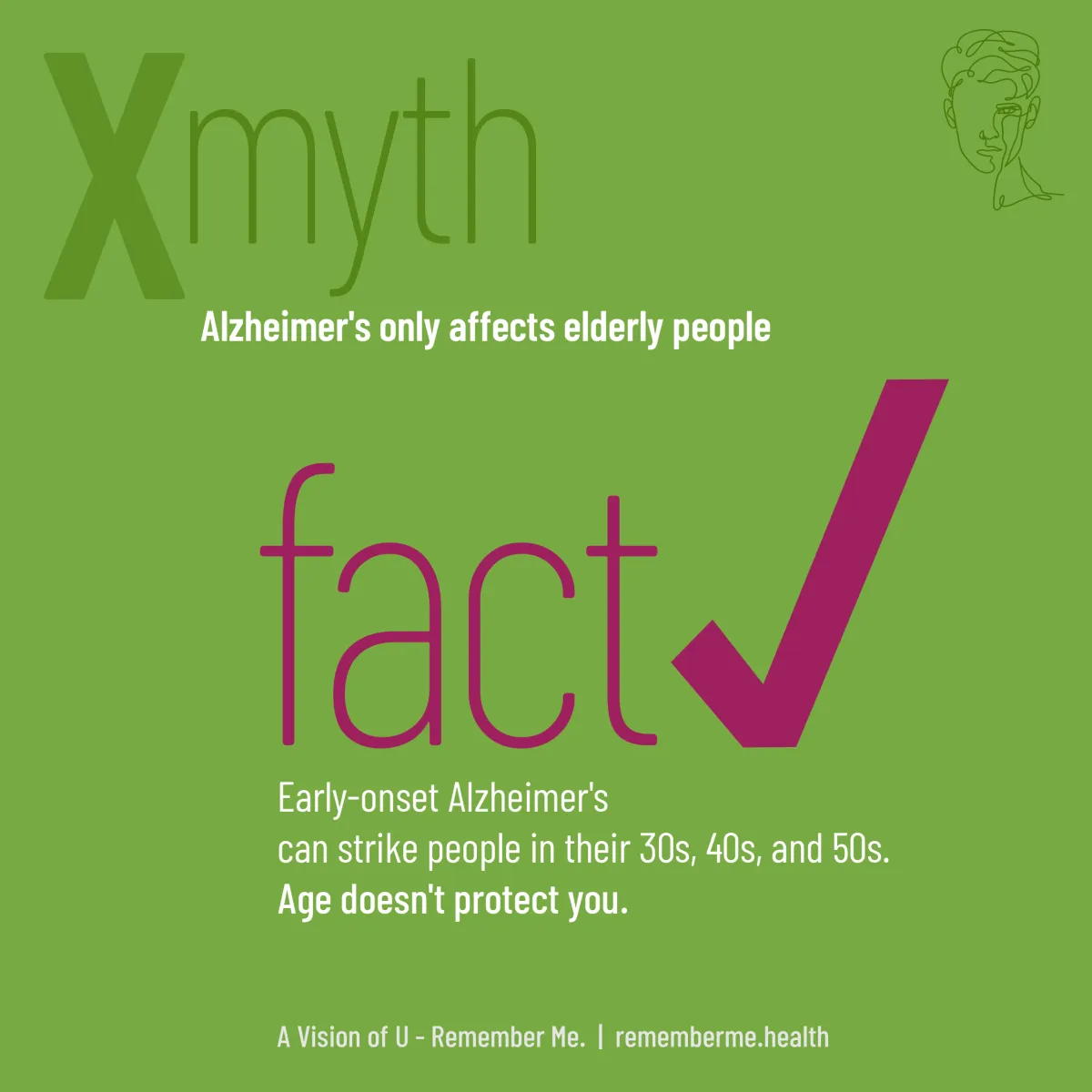 Fact: "Early-onset Alzheimer's can strike people in their 30s, 40s, and 50s. Age doesn't protect you."