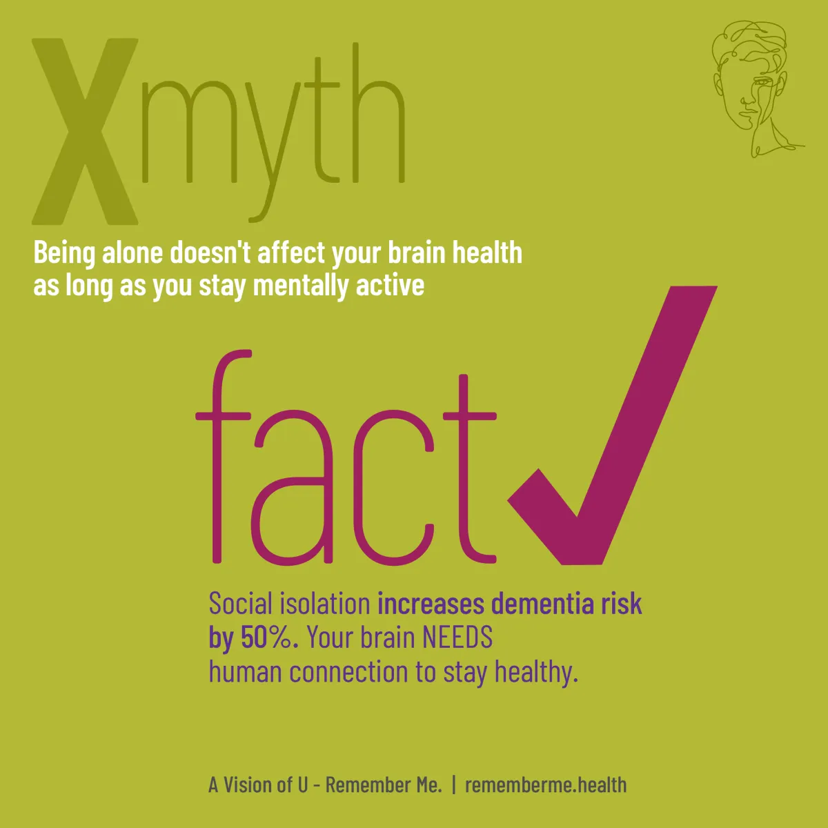 Fact: "Social isolation increases dementia risk by 50%. Your brain needs human connection to stay healthy."