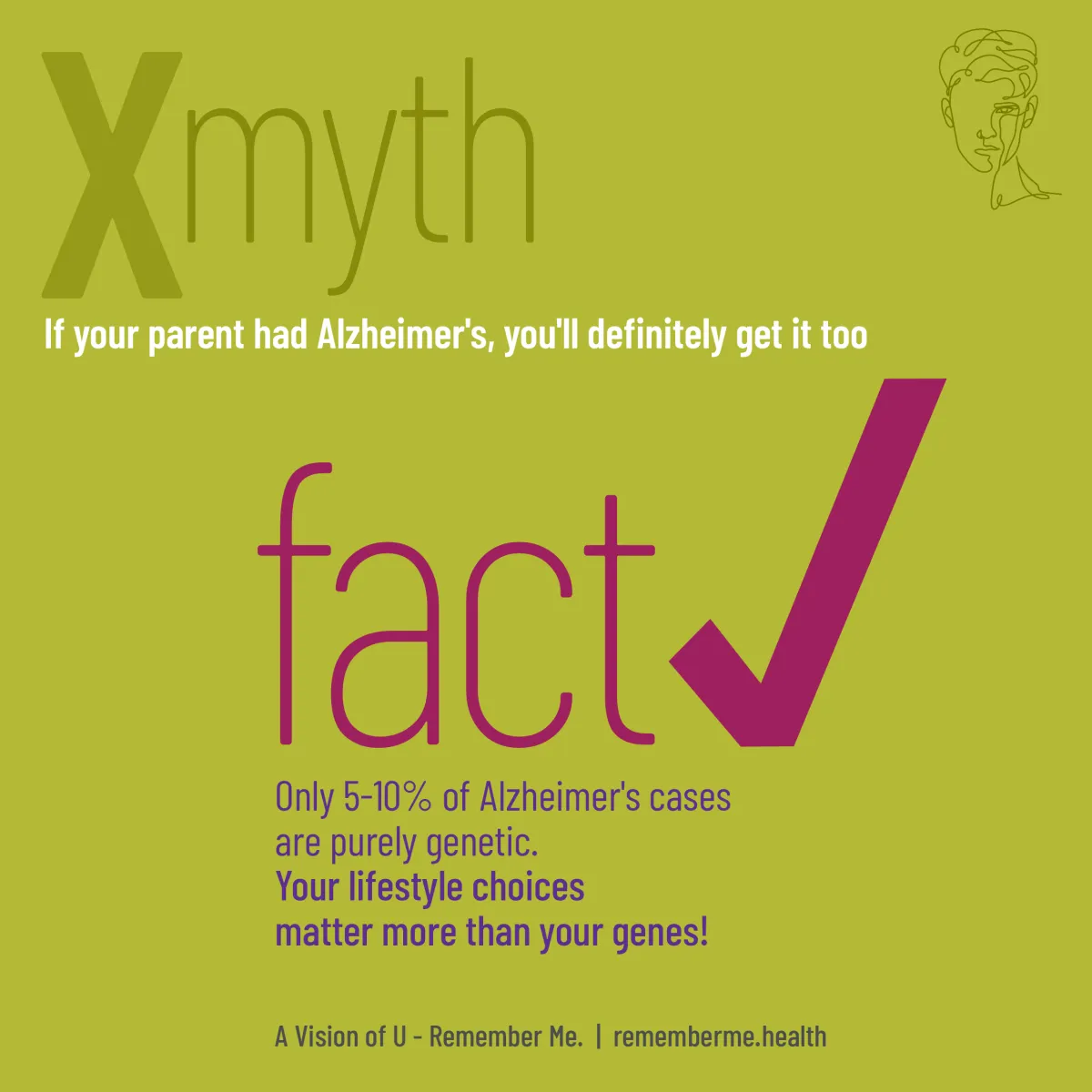 Fact: "Only 5-10% of Alzheimer's cases are purely genetic. Your lifestyle choices matter more than your genes."